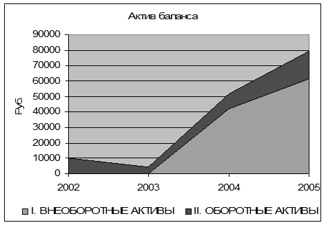 На следующих рисунках показан состав баланса НОУ «Перекресток» с начала 2002 года по 2005 год, т.е. практически за весь период существования организации.